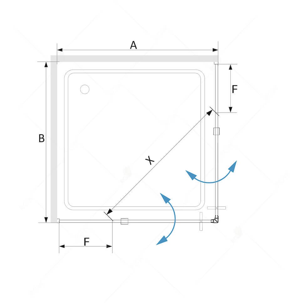 Душевой уголок квадратный с двумя поворотными дверцамиПоворотный стержень (петля) из нержавеющей сталиДвойные ручки из нержавеющей стали 50 смКонструкция петель позволяет производить открытие дверей, как внутрь, так и наружу душевого угла.
