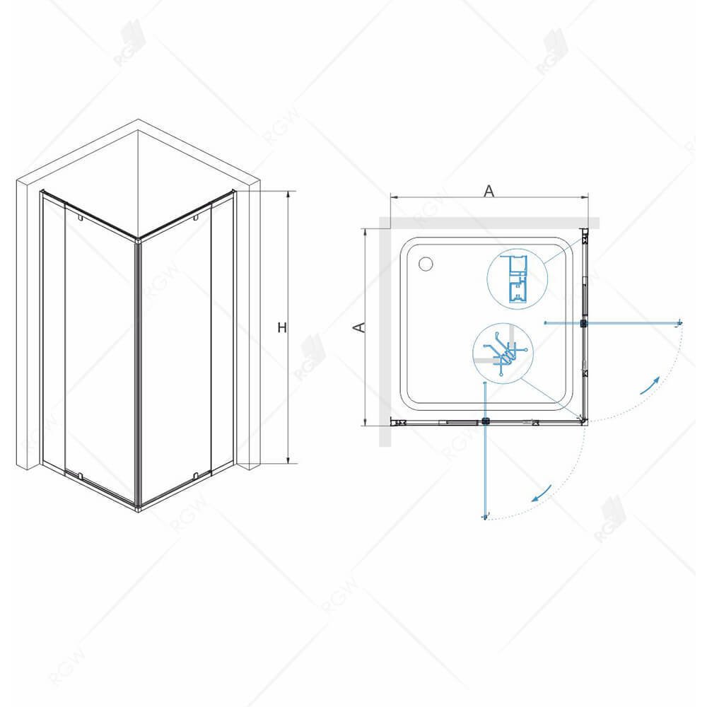 Душевой уголок RGW (РГВ) 90-100х90-100х195 см PA-38 Квадрат, Хром, Прозрачное, 6 мм (06083899-11)