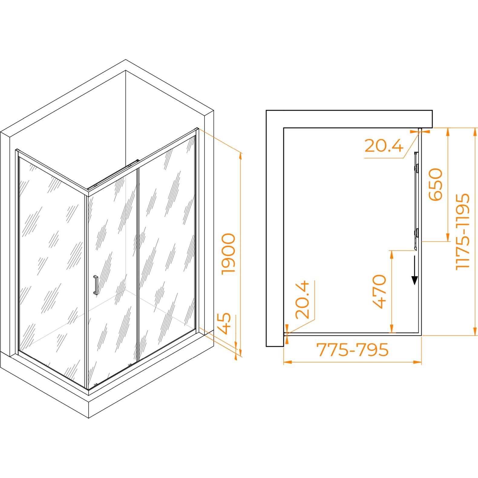 Диапазон регулировки ширины:(775-795)х(1175-1195) мм p>