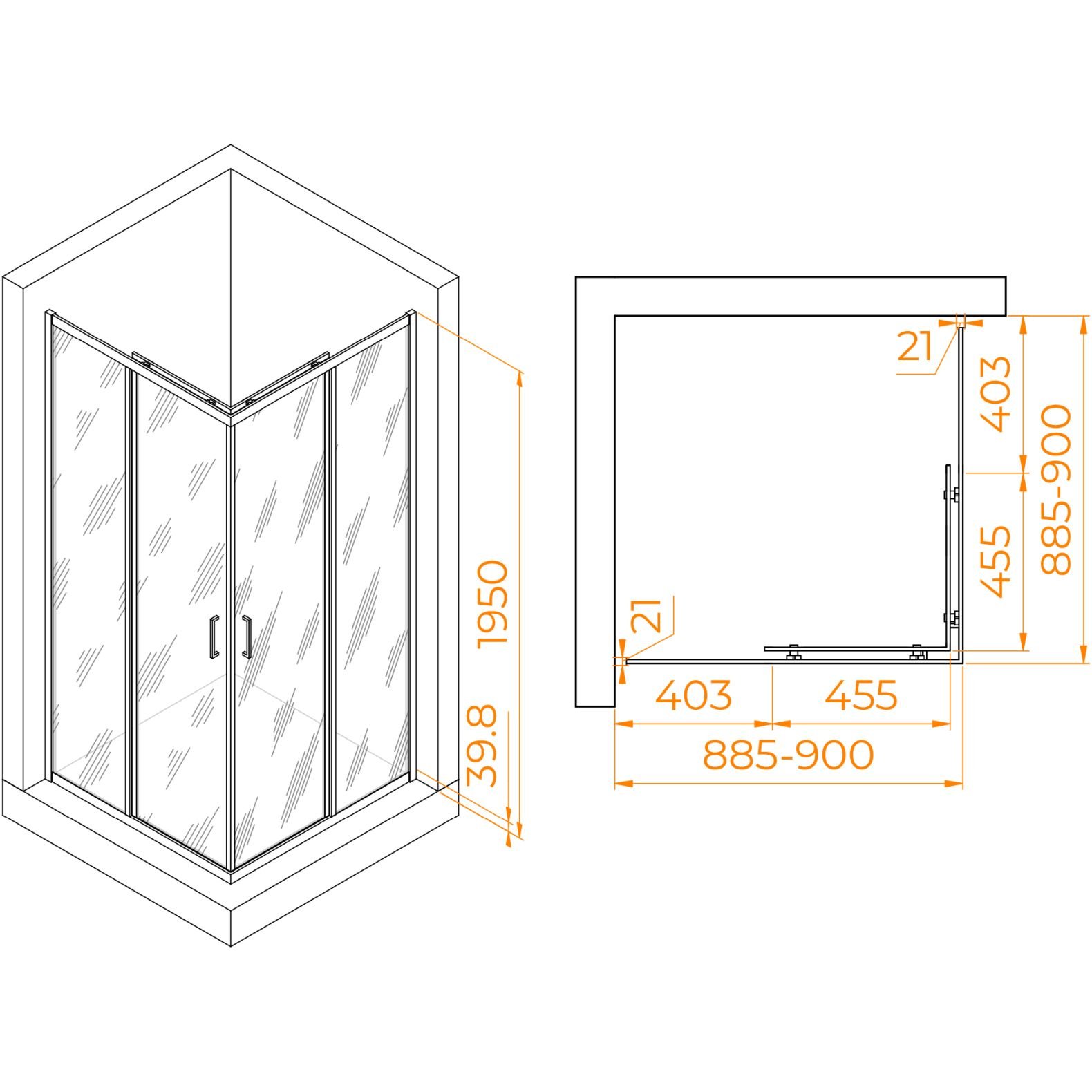 Диапазон регулировки ширины:(885-900)х(885-900) мм p>