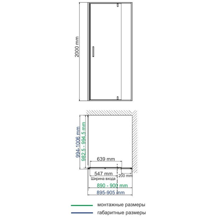 Душевая дверь RGW (РГВ) 90х195 см HO-012-B Черный, Прозрачное, 8 мм (350601209-14)