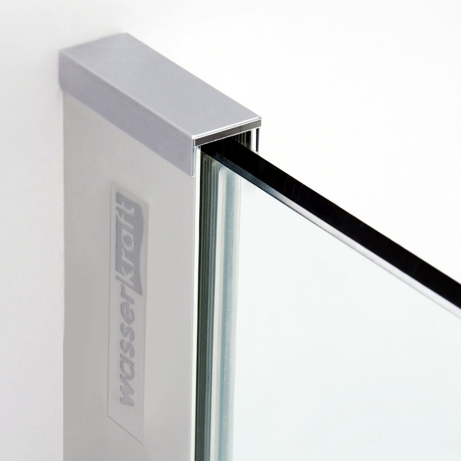 Покрытие WasserSchutz – это неотъемлемая часть стекла, которая создается с помощью химического и физического воздействия. Оно защищает поверхность стекла от разводов воды и известковых отложений. Капли воды на поверхности невидимого защитного слоя не задерживаются, а стекают, не оставляя подтеков. Это гарантирует легкий уход за изделием. В душевых уголках «WasserKRAFT» сторона стекла, где нанесено покрытие WasserSchutz, обозначается специальной наклейкой. Именно этой стороной внутрь необходимо устанавливать стекло.
