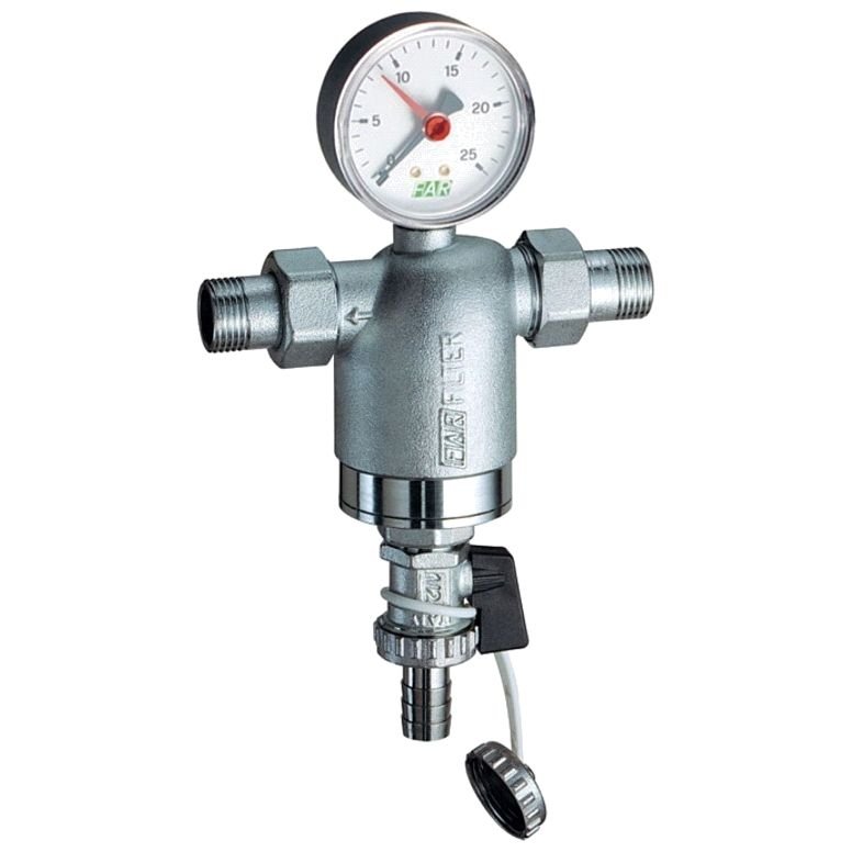 Фильтр FAR (ФАР) FA39A4 12100 механической очистки 1/2 муфтовый НР-НР с манометром Ду 15