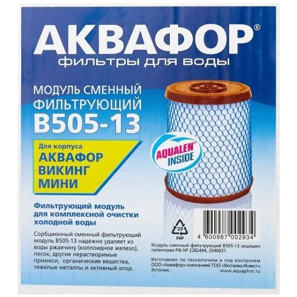 Сменный модуль Аквафор предназначен для очистки холодной водопроводной воды от хлора, органических соединений, железа и токсинов. Модуль обладает увеличенным ресурсом. Подходит для корпуса Викинг Мини.
