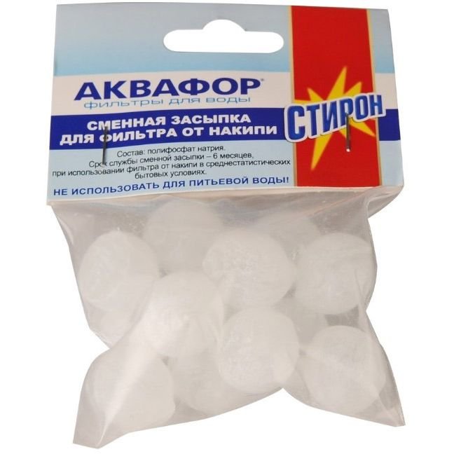 Сменная засыпка Аквафор неоходима для фильтра от накипи. Значительно смягчает воду и защищает бытовую технику от возникновения накипи. Упаковки хватает на 300 стирок и на 2 года службы фильтра Стирон.