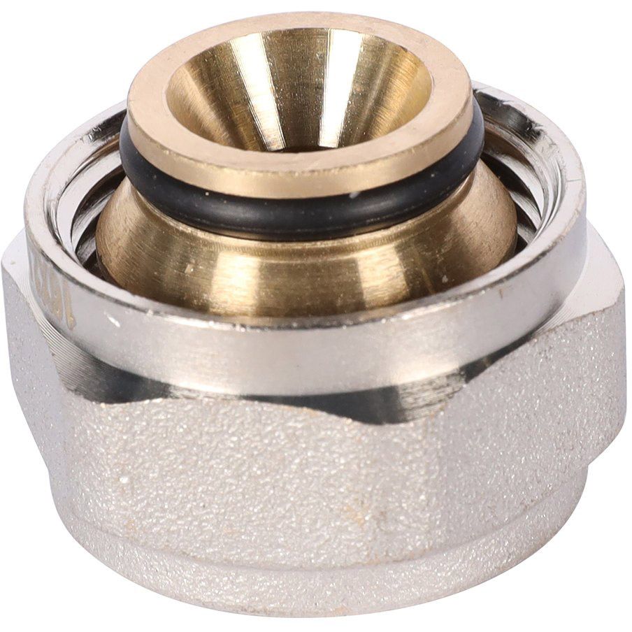 ROMMER Фитинг компрессионный с накидной гайкой для труб PEX-AL-PER, размером 16×2,6×3/4", предназначен для герметичного соединения труб из шитого полиэтилена в системах отопления или водопровода с резьбовыми элементами. Корпус выполнен из стойкой к коррозии латуни, монтаж осуществляется быстро и легко.