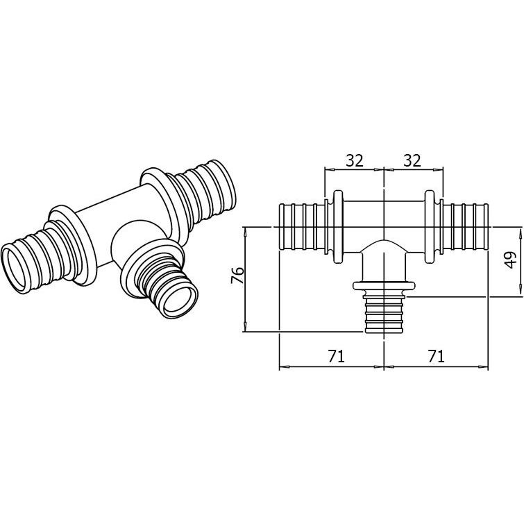 Диаметр соединений:50 х 32 х 50 мм p>