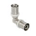 (VTm.251.N) Пресс-фитинг – угольник, обеспечивающий соединение труб (металлопластиковых или из сшитого полиэтилена) под углом 90 градусов. Особенности конструкции изделия, используемые материалы обусловили надежность соединений, повышенную пропускную способность, температурную стойкость, механическую прочность. При изготовлении пресс-угольника используются высококачественные материалы: сантехническая латуни CW617N с никелевым покрытием (корпус), нержавеющая сталь (гильза), EPDM (уплотнительные кольца, 2 шт. для каждого штуцера). Фиксатор, одновременно играющий роль диэлектрической прокладки, делается из нейлона. Монтаж соединителя выполняется пресс-инструментом с насадкой ТН.