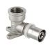 (VTm.254.N) Угловой пресс-фитинг с креплением (водорозетка) для соединения металлополимерной трубы (металлопластиковые трубы) или трубы из сшитого полиэтилена с компонентом системы, имеющим резьбовое подключение. Резьба фитинга – внутренняя трубная по ГОСТу 6357. Основное назначение – монтаж сантехнического смесителя.