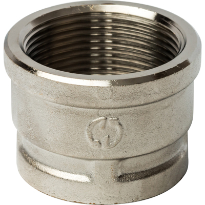 Латунный фитинг для соединения элементов трубопровода разного диаметра, никелированный. Резьба – внутренне-внутренняя, цилиндрическая трубная. Предусмотрен участок корпуса шестигранной формы, под гаечный ключ.