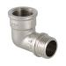(VTr.092.N) Угловой латунный никелированный фитинг. Резьба – внутренняя/наружная, цилиндрическая трубная по ГОСТу 6357 (ISO 228, EN 10226). Внутренняя резьба фитинга совместима также с наружной конической резьбой по ГОСТу 6211 (ISO R7).