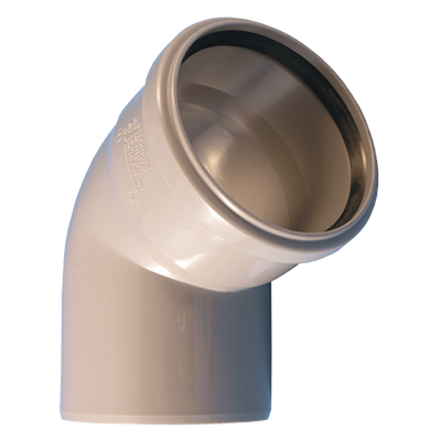 Отвод с резиновым уплотнением предназначен для создания поворота внутренней канализационной системы из труб.