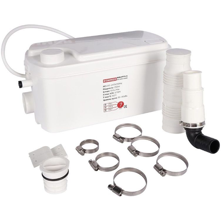 Компактная канализационная насосная установка ROMMER BIOLIFT S-3 – предназначена для перекачивания бытовых сточных вод от раковин, умывальников и душа, которые находятся ниже уровня коллектора канализационной системы, а также в удаленных местах, где невозможно или нецелесообразно организовать канализацию самотеком.