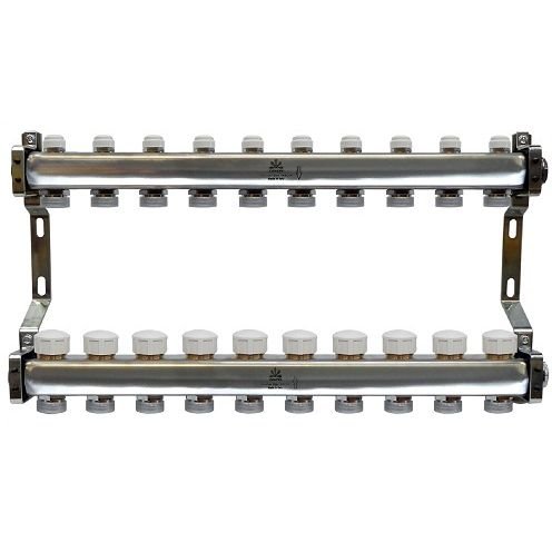 Блок коллекторный Gekon (Гекон) 1 дюйм, для тепл.пола и радиат.отопления, 10 отводов 3/4 дюйм, в комплекте: термостат. клапаны, микрометр.вентили, кронш-ны, заглуш (GK 75110)