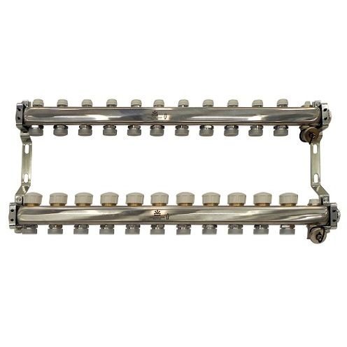 Блок коллекторный Gekon (Гекон) 1 дюйм, для тепл.пола и радиат.отопления, 11 отводов 3/4 дюйм, в комплекте: термостат.клапаны, микрометрич.вентили, сливн.краны (GK 73111)