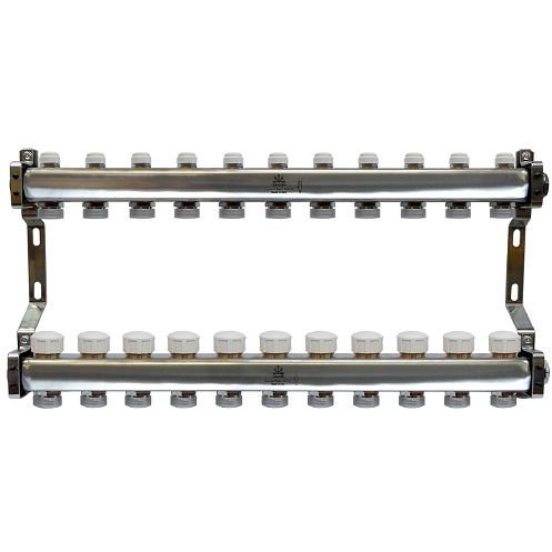 Блок коллекторный Gekon (Гекон) 1 дюйм, для тепл.пола и радиат.отопления, 11 отводов 3/4 дюйм, в комплекте: термостат. клапаны, микрометр.вентили, кронш-ны, заглуш (GK 75111)