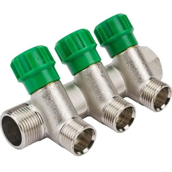 Доставка Коллектор Kromwell (Кромвелл) с регулируемыми вентилями и переходами на наружную резьбу, 3 отвода 3/4х1/2 дюйм (EU.ST3078135 3x34x12_k) из Москва в районы и города ЮВАО, ЮЗАО, ЮАО, Новомосковский АО, Одинцово, Подольск, Щербинка, Троицк, Строительный рынок Славянский мир, 41-й км МКАД, бывшая Мельница, Красногорск, Домодедово, Тёплый стан, Коммунарка, Мосрентген, Видное, Мамыри, Краснознаменск