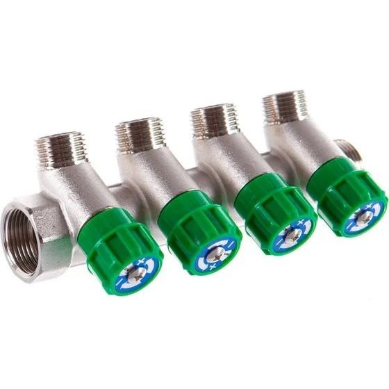 Коллектор Kromwell (Кромвелл) с регулируемыми вентилями и переходами на наружную резьбу, 4 отвода 3/4х1/2 дюйм (EU.ST3078145 4x34x12_k)