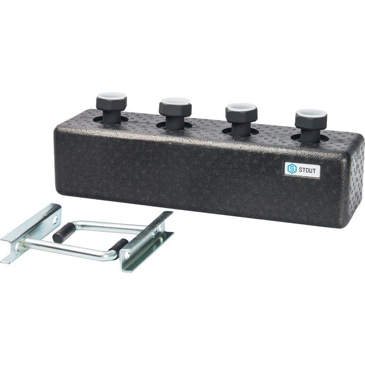 Модификации коллекторов позволяют компоновать гидромодули самой различной конфигурации. Полная заводская готовность распределительных коллекторов и других элементов обеспечивает быстрый и легкий монтаж системы. Распределительный коллектор STOUT представляет собой одну стальную коробчатую трубу прямоугольного сечения, к которой снизу и сверху соосно приварены парные патрубки (входные и выходные). Внутри трубы выполнены фигурные перегородки для разграничения прямого и