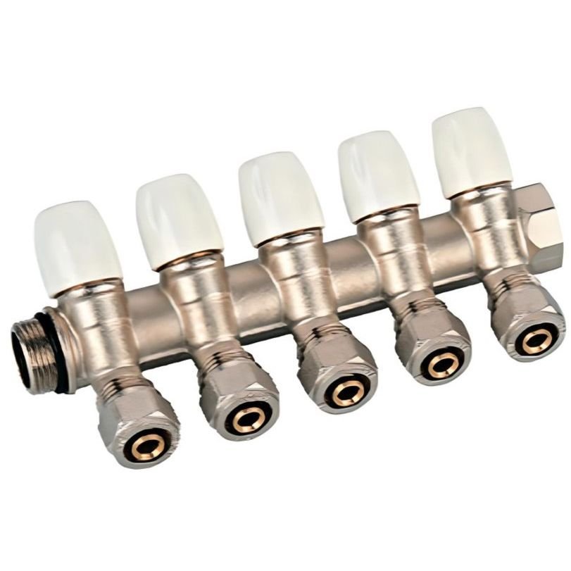 Коллектор с вент. кранами 3/4 х 16-5вых. (бел. бар.) Vieir (Виеир) (VR515)