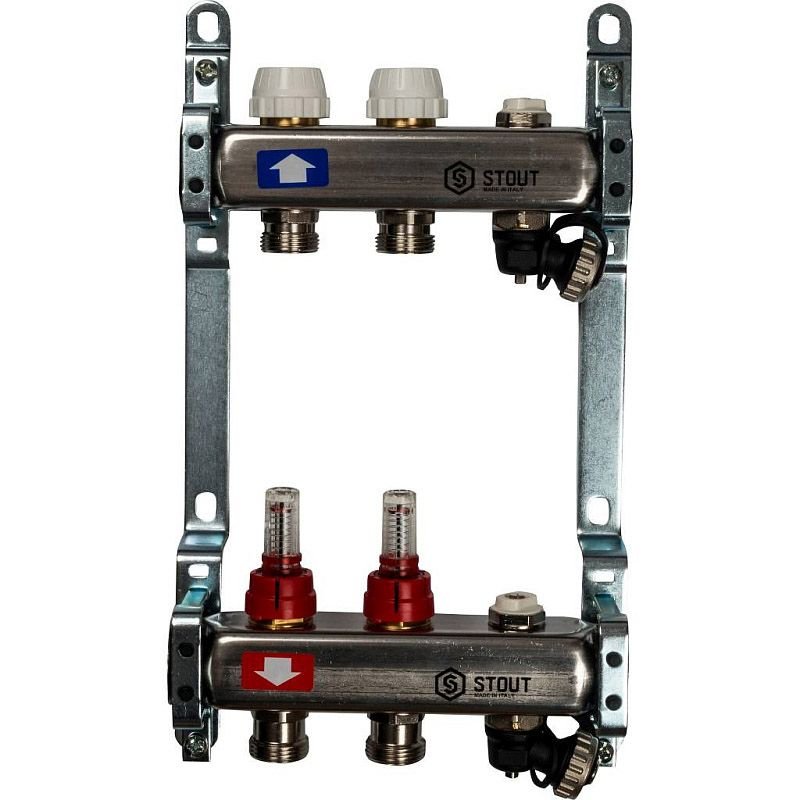Коллектор Stout (Стаут) из нержавеющей стали с расходомерами, с клапаном вып. воздуха и сливом 2 вых. (SMS-0927-000002)