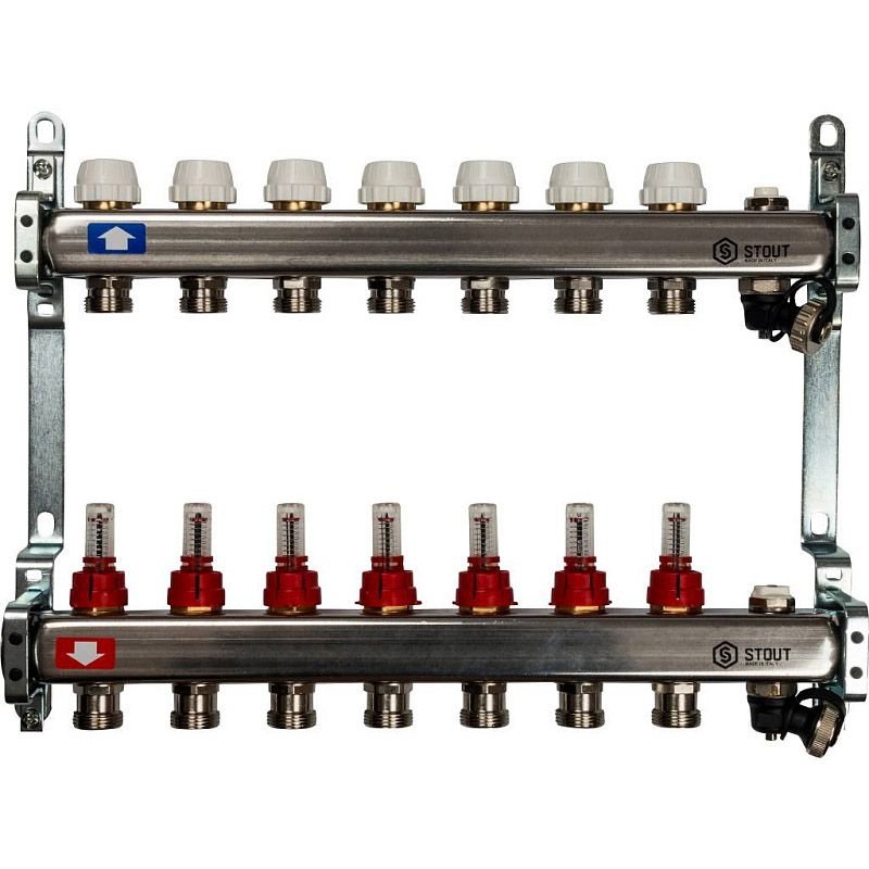 Коллектор Stout (Стаут) из нержавеющей стали с расходомерами, с клапаном вып. воздуха и сливом 7 вых. (SMS-0927-000007)