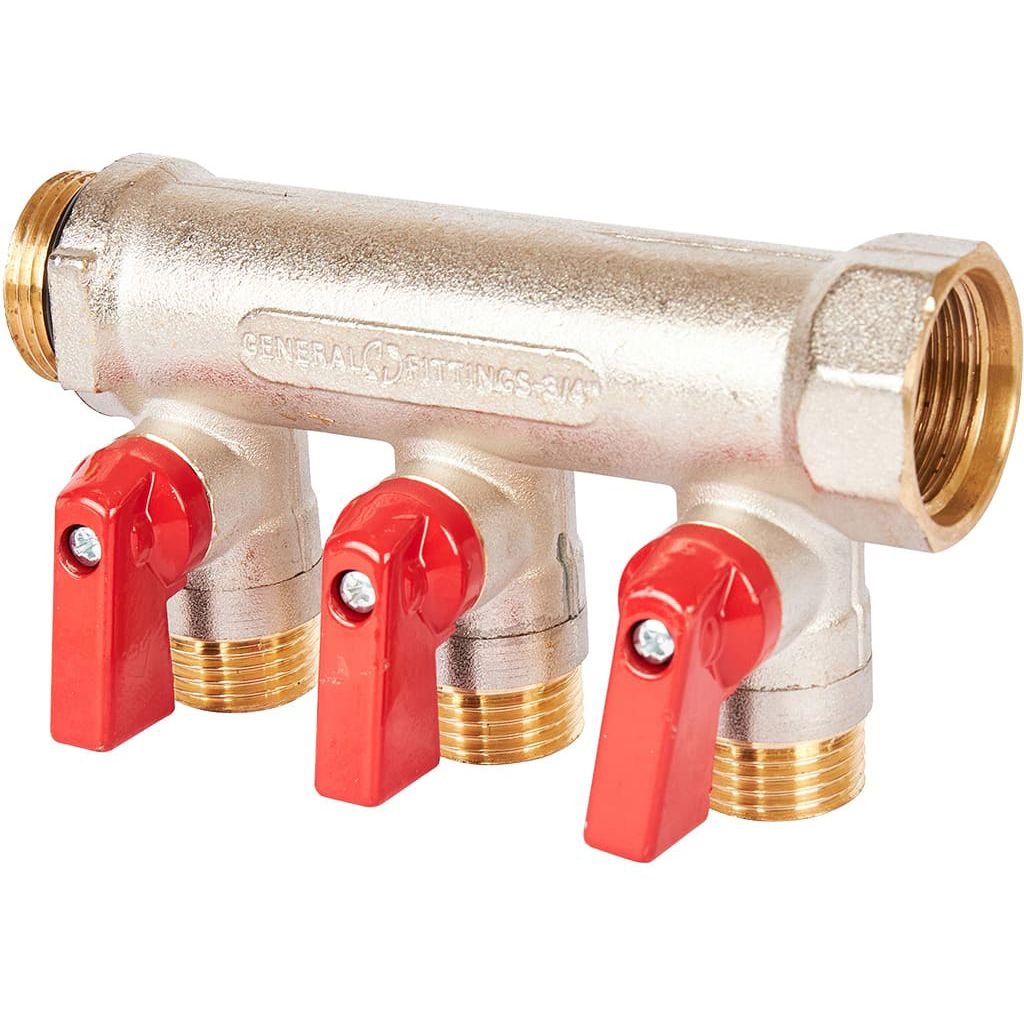 Коллектор Stout (Стаут) с шаровыми кранами 3/4″, 3 отвода 1/2″ красные ручки (SMB 6210 341203)