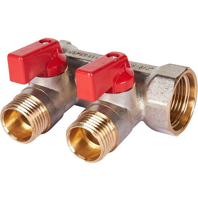 STOUT SMB 6210 341203 - это коллектор с шаровыми кранами диаметром 3/4", имеющий три отвода по 1/2" каждый. Красные ручки кранов обеспечивают удобство управления. Устройство используется для регулировки потока теплоносителя в системе водяного отопления и установки комфортной температуры.