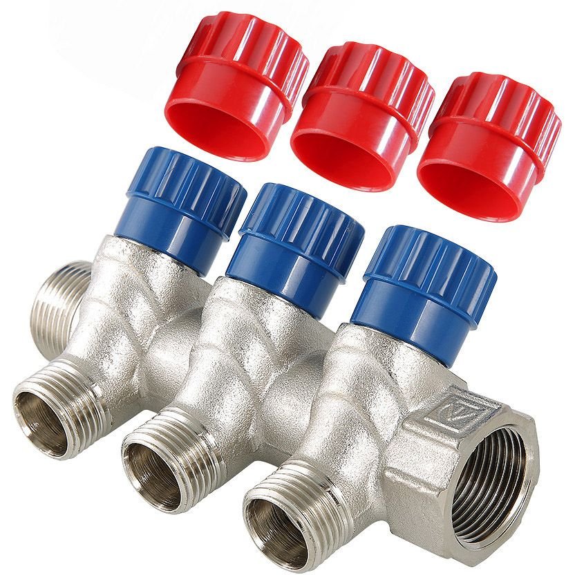 Коллектор Valtec (Вальтек) с регул. вентилями, 3/4″х3 вых. 1/2″ нар. (VTc.560.N.0503)