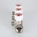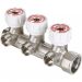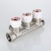 (VTc.570.N) Латунный никелированный коллектор c выходами 1/2" (резьба – наружная). На каждом выходе предусмотрен вентиль для регулирования расхода рабочей среды. Диаметр коллектора – 3/4", резьба – внутренняя/наружная.