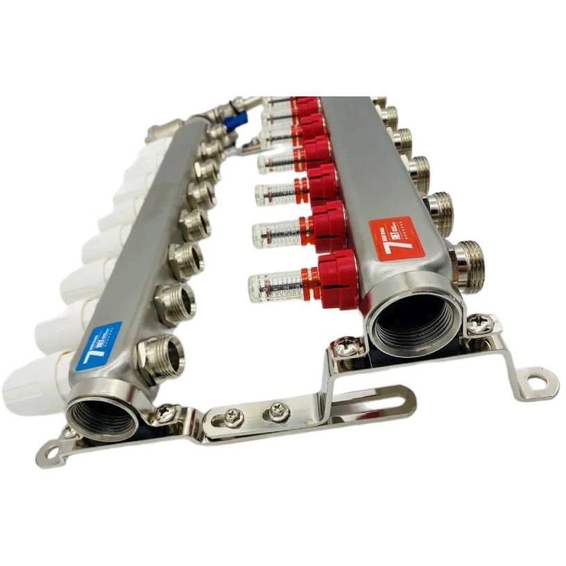 Коллекторный блок для радиаторов Stout (Стаут) AISI 304L 1 на 3/4 дюйма 7 выходов (SMS 0923 000007)