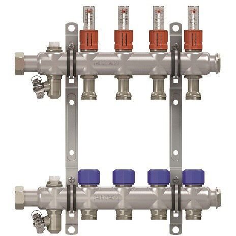 Коллекторная группа Elsen (Элсен) , 1″, 8 контуров, размер отвода-3/4″, с вентилями и расходомерами, нержавеющая сталь