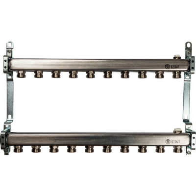 Коллекторный блок для радиаторов Stout (Стаут) AISI 304L 1 на 3/4 дюйма 10 выходов (SMS 0923 000010)