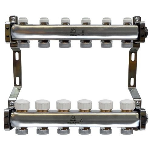 Коллекторный блок Gekon (Гекон) для тепл.пола и радиаторного отопления 1х3/4 дюйм, отводов 6, в комплекте: термостат. (GK 75106)