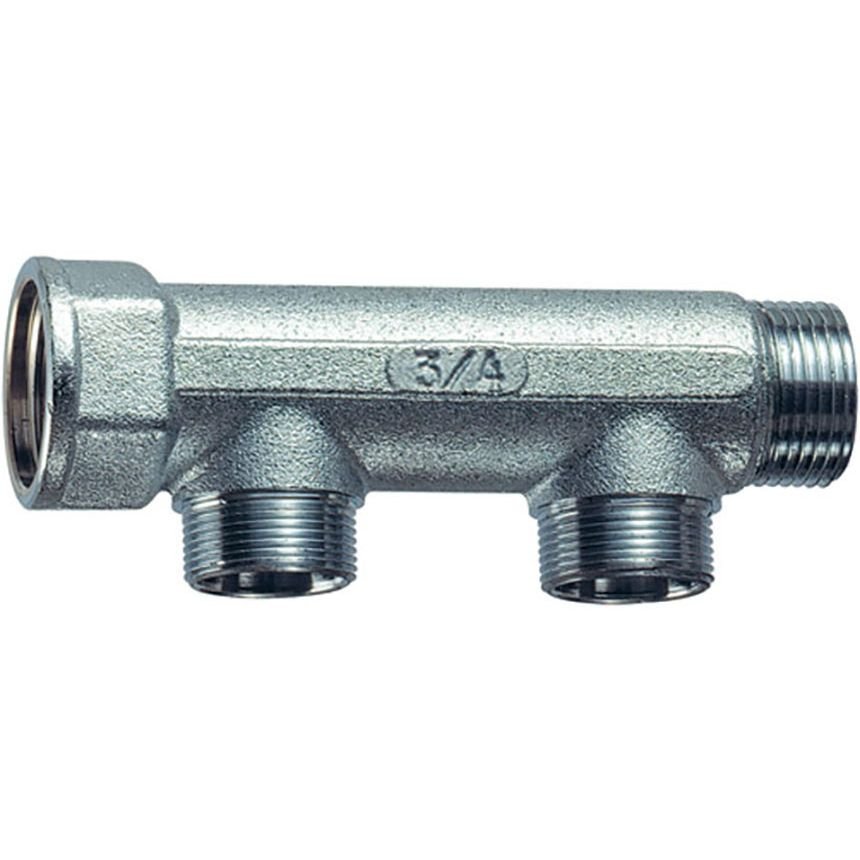 Хромир.проходн.коллектор Far (Фар) 3/4″ ВР-НР 2 отводами 1/2″ НР под плоск.уплотн. FK 3475 34TP