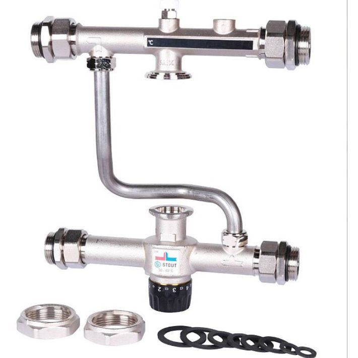 Насосно-смесительный узел Stout (Стаут) с термостатическим клапаном 30-60°C, без насоса (SDG-0120-007000)