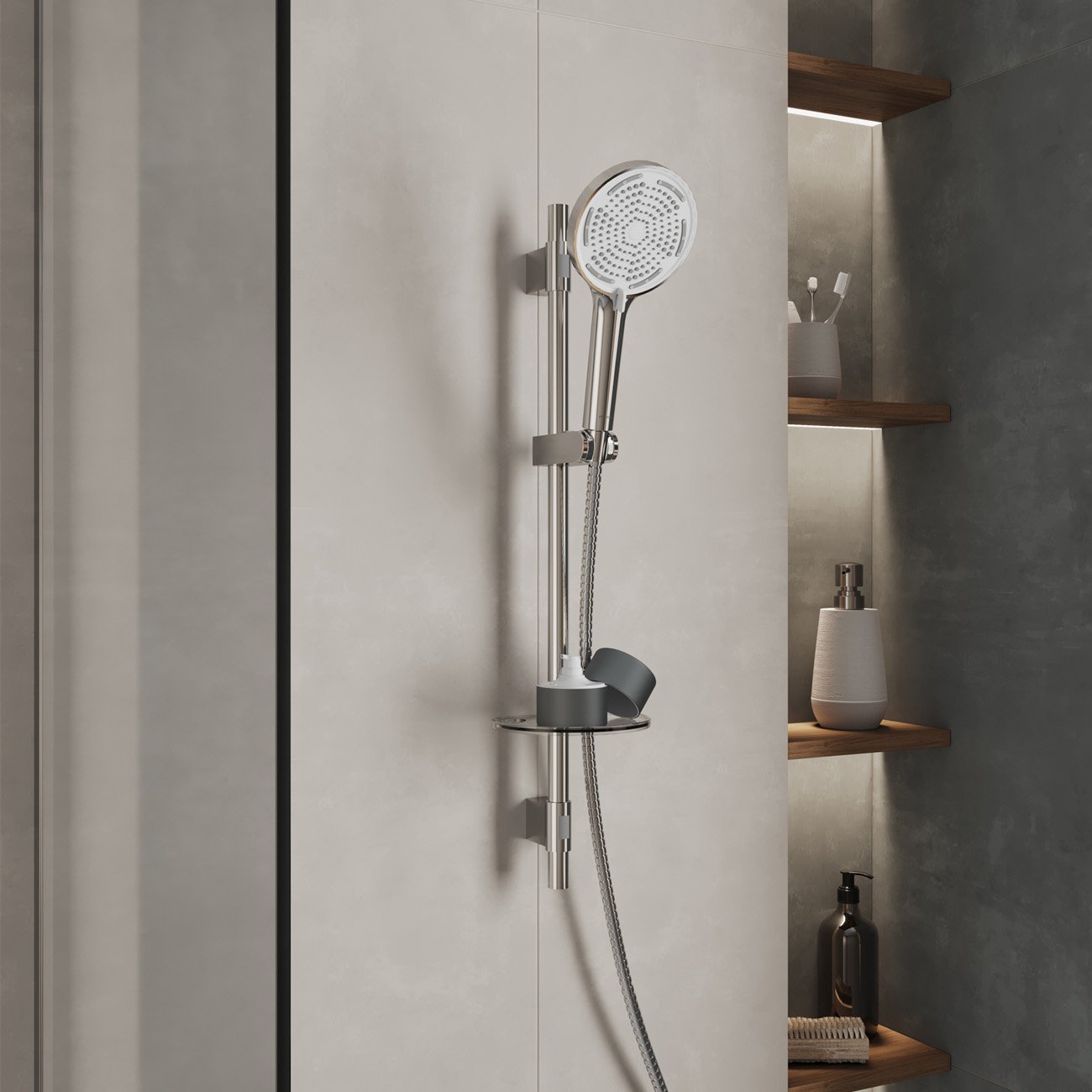 Каждая деталь душевого гарнитура Ideal Spa продумана с заботой о вашем личном комфорте: поворотный держатель, шланг с защитой от перекручивания и специальным креплением для его фиксации в мыльнице – ничто не будет отвлекать от принятия душа. Модель гармонично смотрится практически в любом современном интерьере ванной комнаты. Большая ручная лейка (130 мм) с множеством форсунок создает ощущение использования настоящего тропического душа. В ней 3 режима работы с интуитивно понятным рычажным переключением: Spray, Massage и Mist.