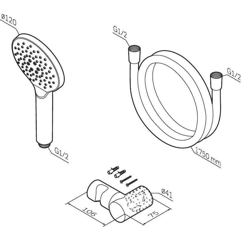 Комплектация:F0118022 Like, душевой набор: ручной душ 120мм, держатель ручного душа, душевой шланг, чёрный, шт. p>