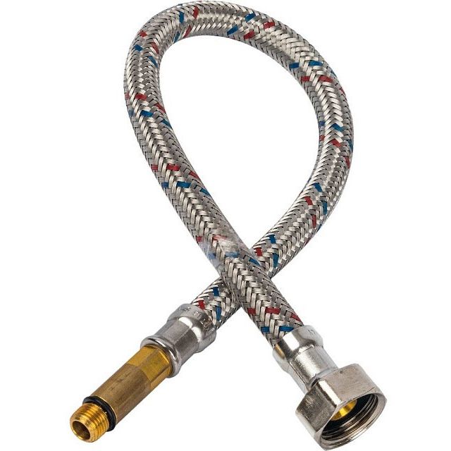 Гибкая подводка представляет собой шланг из нетоксичной резины в оплетке из нержавеющей стали. По концам подводки напрессованы ниппели с наружной резьбой или с накидной гайкой, укомплектованной прокладкой.