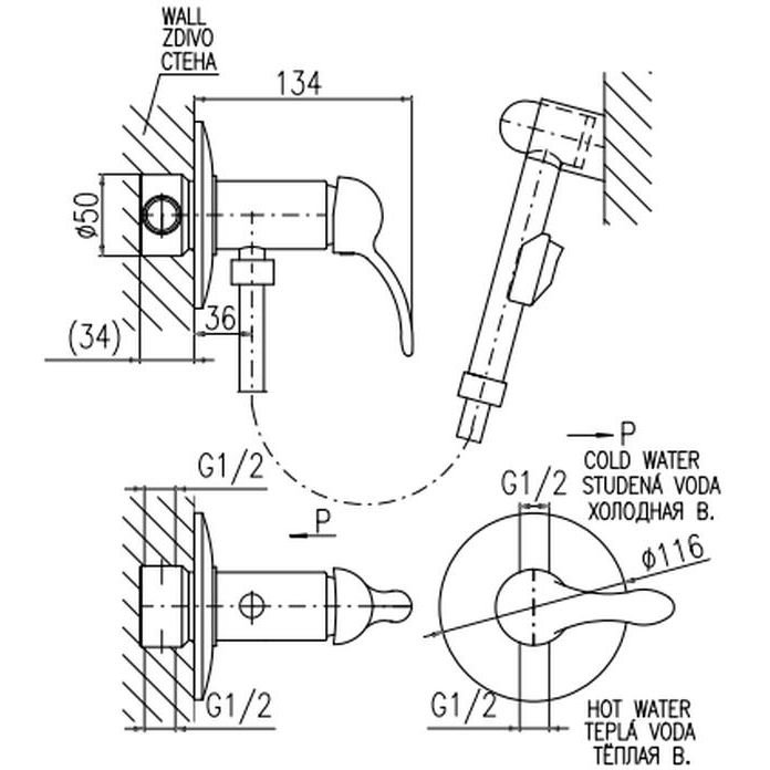 Гигиенический душ со смесителем Rav Slezak (Рав Слезак) LABE L047/1, хром