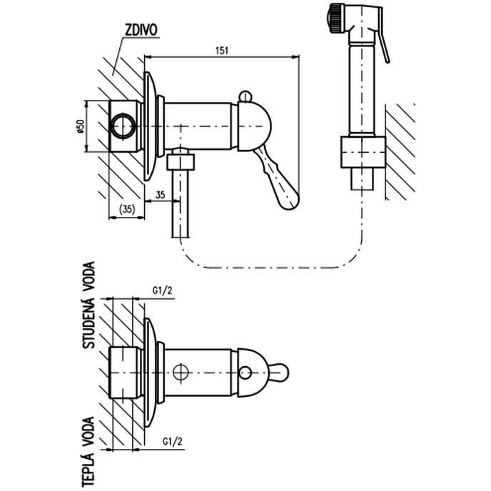 Гигиенический душ со смесителем Rav Slezak (Рав Слезак) LABE L447SM, бронза