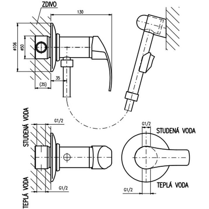 Гигиенический душ со смесителем Rav Slezak Mississippi MS047, хром