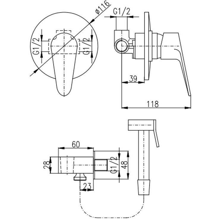 Комплектация:смеситель, лейка, шланговое подключение с держателем лейки, шланг, внутренняя часть p>