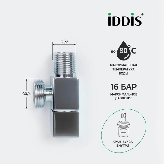 Доставка Кран угловой Iddis (Иддис), с отражателем, 1/2; 3/4, кран-букса, латунь, 910B0Z3C4CZ из Москва в районы и города ЮВАО, ЮЗАО, ЮАО, Новомосковский АО, Одинцово, Подольск, Щербинка, Троицк, Строительный рынок Славянский мир, 41-й км МКАД, бывшая Мельница, Красногорск, Домодедово, Тёплый стан, Коммунарка, Мосрентген, Видное, Мамыри, Краснознаменск