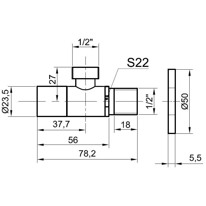 Кран угловой 1/2 х 3/4 матовый Vieir (Виеир) (VER34)