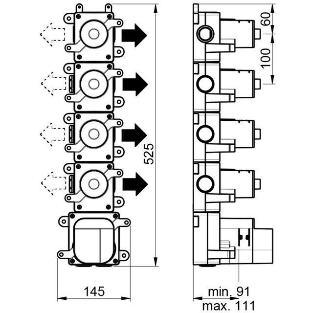 Доставка Встраиваемая часть термостатического смесителя Almar (Алмар) High Flow с переключателем на 4 потребителя , 4 вентиля E176004 из Москва в районы и города ЮВАО, ЮЗАО, ЮАО, Новомосковский АО, Одинцово, Подольск, Щербинка, Троицк, Строительный рынок Славянский мир, 41-й км МКАД, бывшая Мельница, Красногорск, Домодедово, Тёплый стан, Коммунарка, Мосрентген, Видное, Мамыри, Краснознаменск
