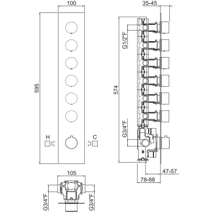 CARIMALI Встраиваемая часть для термостатического смесителя с 6 независимыми выходами