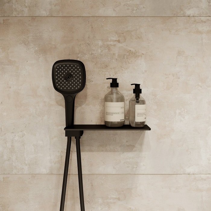 Выход для шланга Iddis (Иддис) Slide с держателем для лейки и полкой матовый черный SLIAB00i62