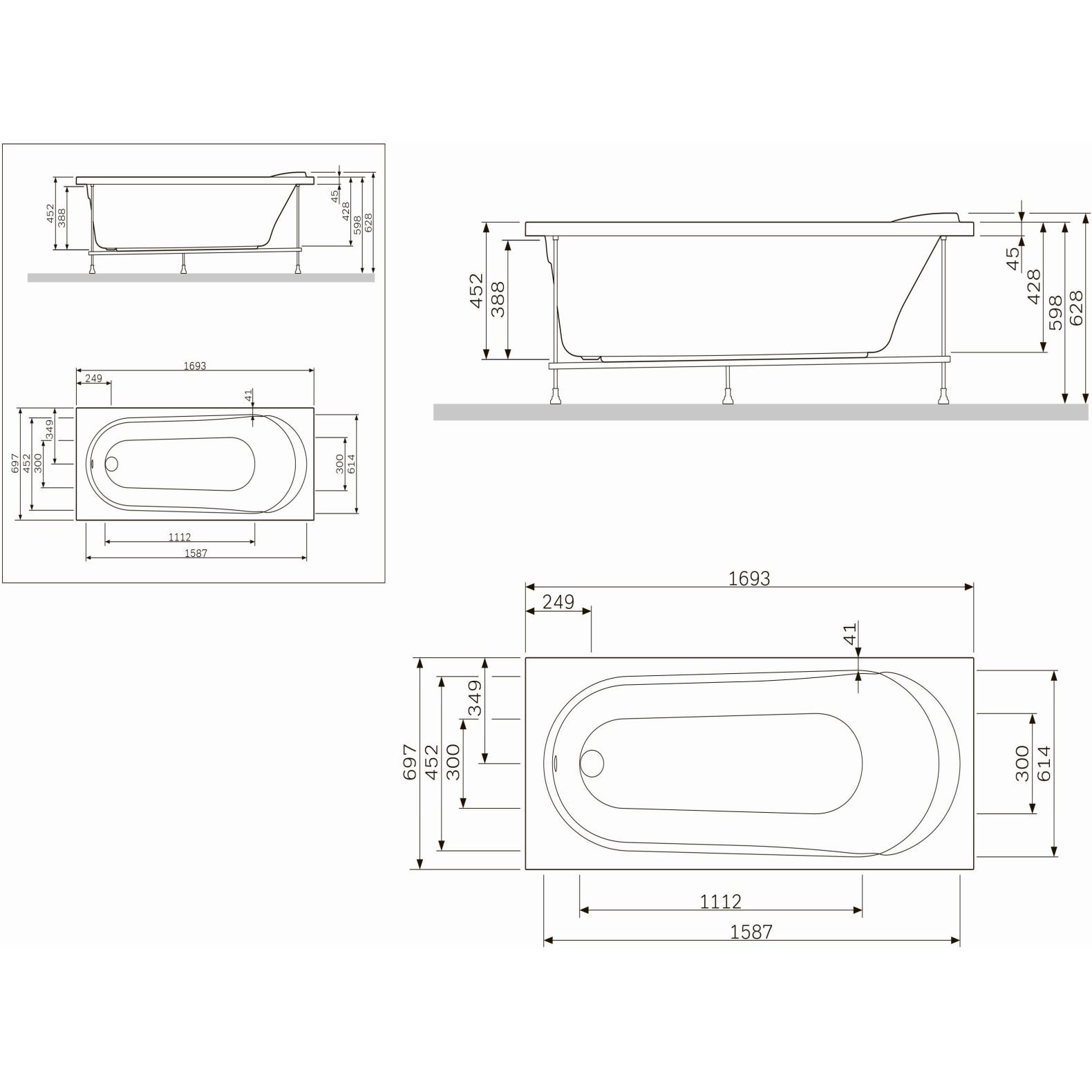 Ванна акриловая Vayer (Вайер) Milana 175x70 см Гл000024272