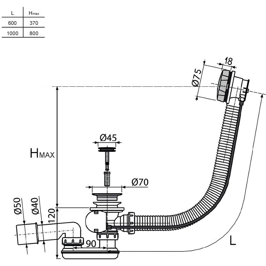 Сифон McAlpine (Макальпин) для раковины 32 мм без выпуска с отводной трубой MRW8